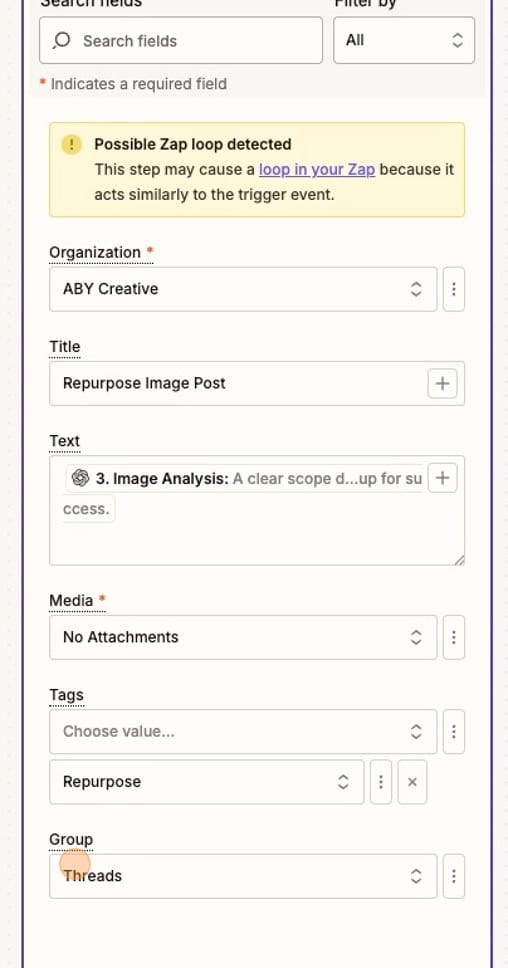 But you could also send the extracted text directly back to your queue. You could send it to a different channel (like Threads). You could also add a Delay step in Zapier if you wanted some time between the inital image post and the text post (like a 30-day delay before it is sent back to your social media scheduling tool.