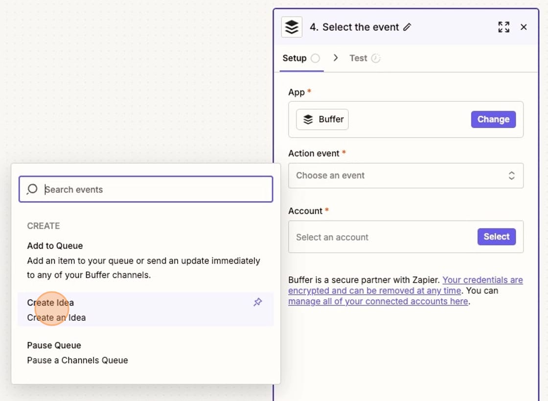 In Buffer, your Action event is "Create Idea."