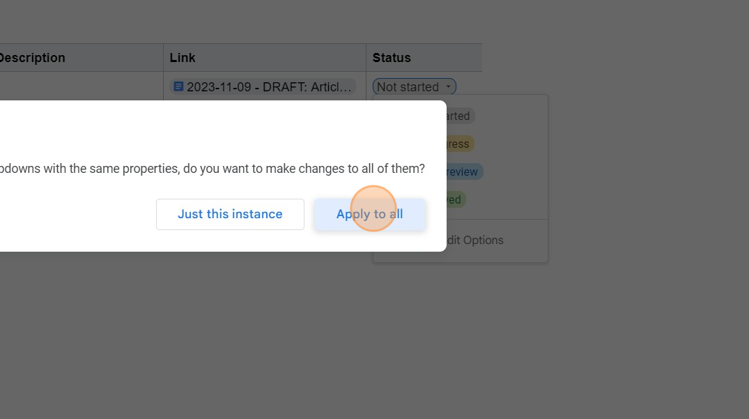When you make changes, you'll be prompted to Apply to all. Proceed with caution, especially if you end up using Building Blocks in different ways. You can select Just this instance and copy over this Building Block to your different drafts.