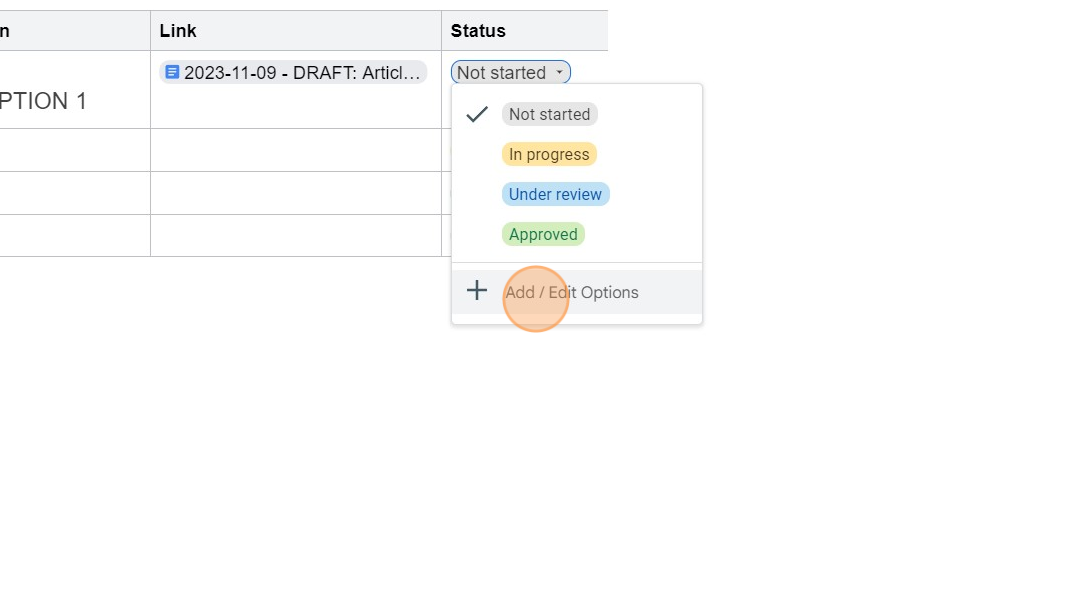 You could also add a second column with another drop-down menu by copying/pasting the existing column. For a while, I kept the Status column, thinking I would update each of my sources as I reviewed them. But I found I wasn't using it, so I deleted it.
