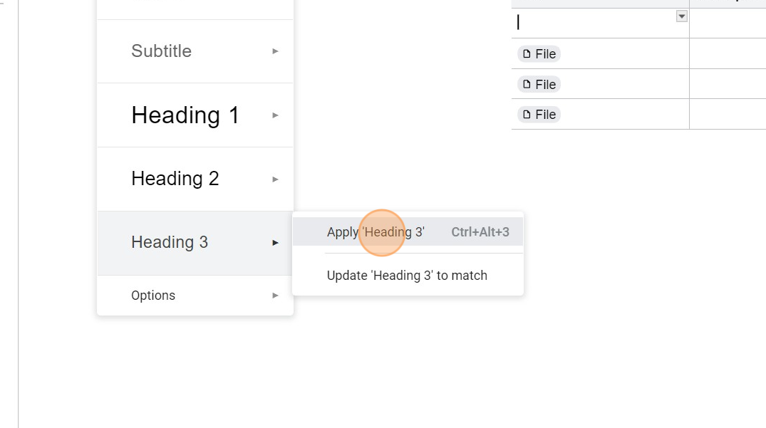 In the first column, you'll drop down the text style menu and change it from Normal text to a Heading style.