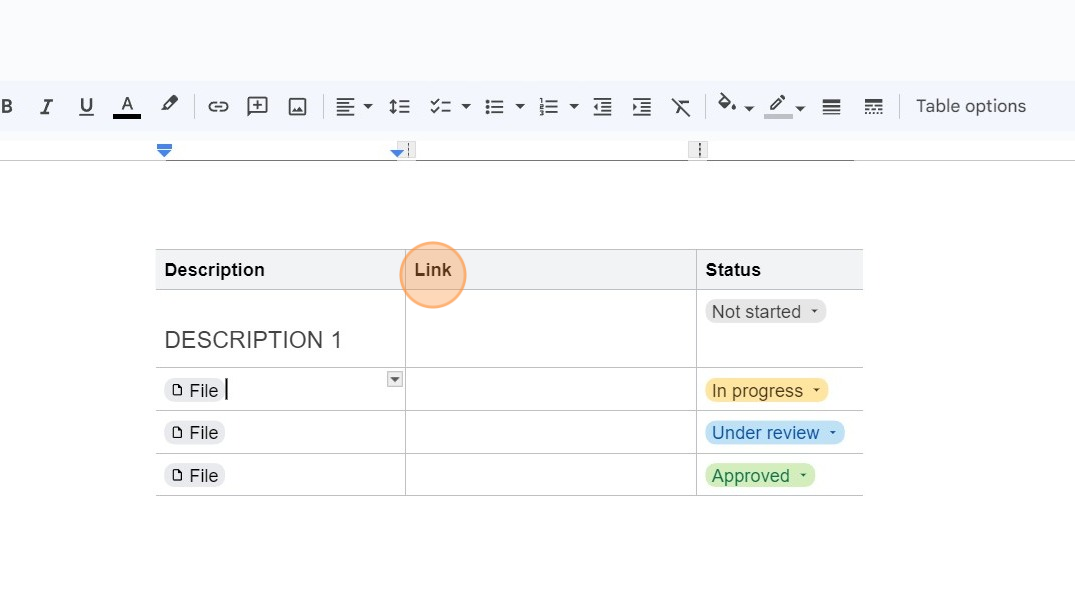 I'll type the word "DESCRIPTION" or something as a placeholder in the first column, using Heading 3.