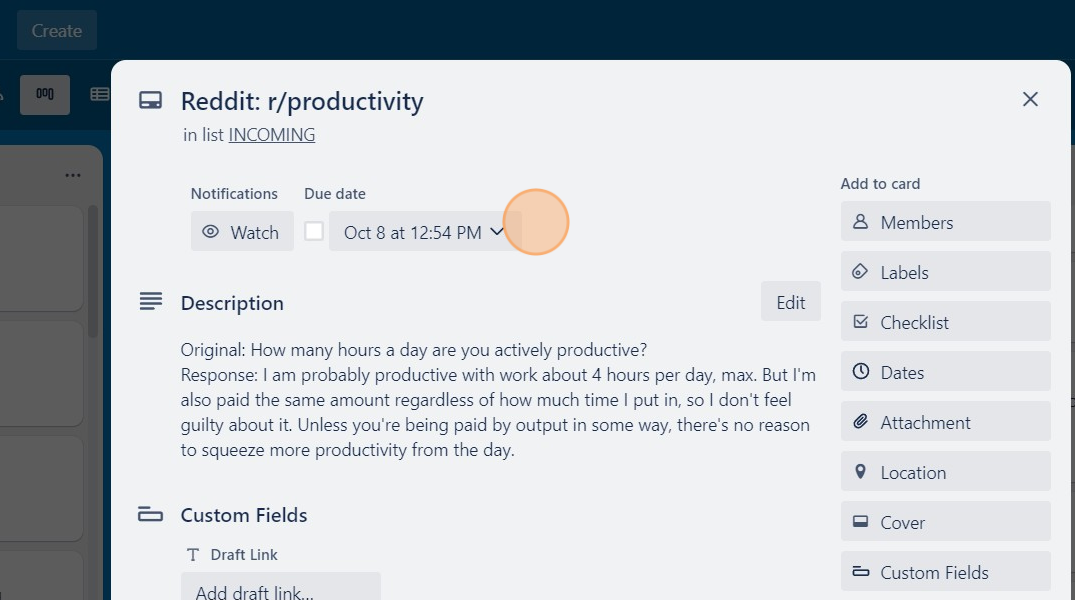 But this would work with any project management platform, not just Trello. You can create a to-do item in the platform of your choosing.