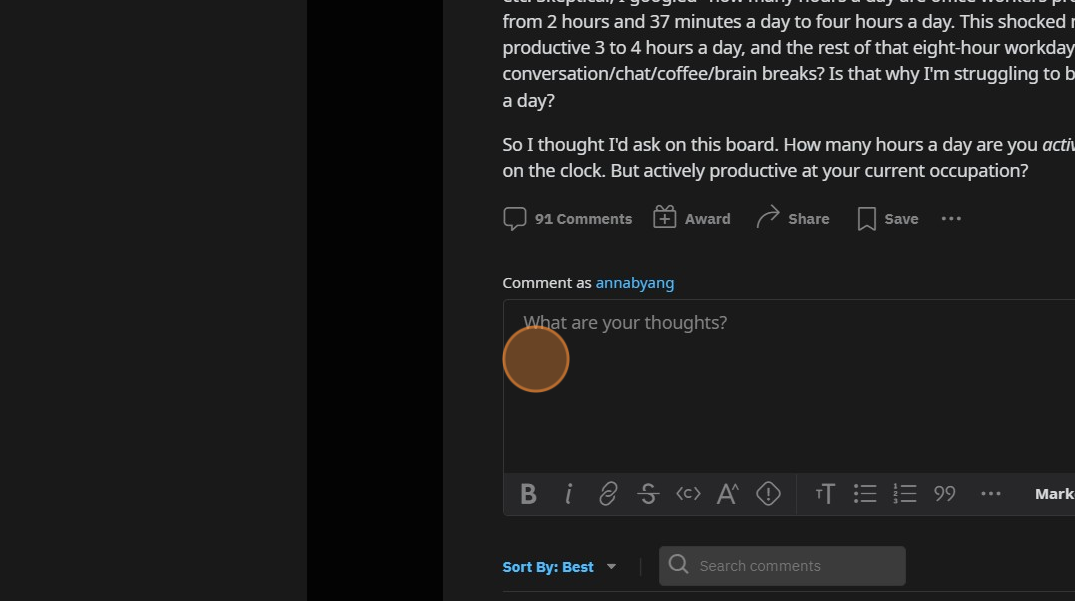 This person felt like they were unproductive for only working a few hours per day — even though they are being paid the same, regardless of the number of hours. I had Thoughts about that, so I commented back. Don't feel compelled to work extra if you're not being paid for output!