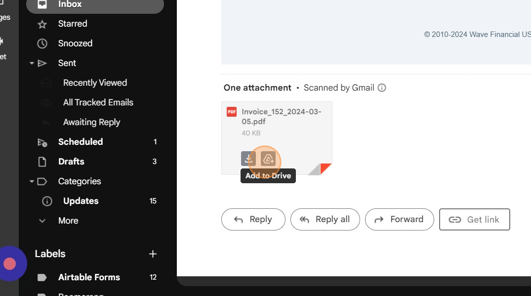 The attached files have to be saved somewhere. I have a folder in my GDrive set up for "Invoices." I have another one set up for "Contracts."