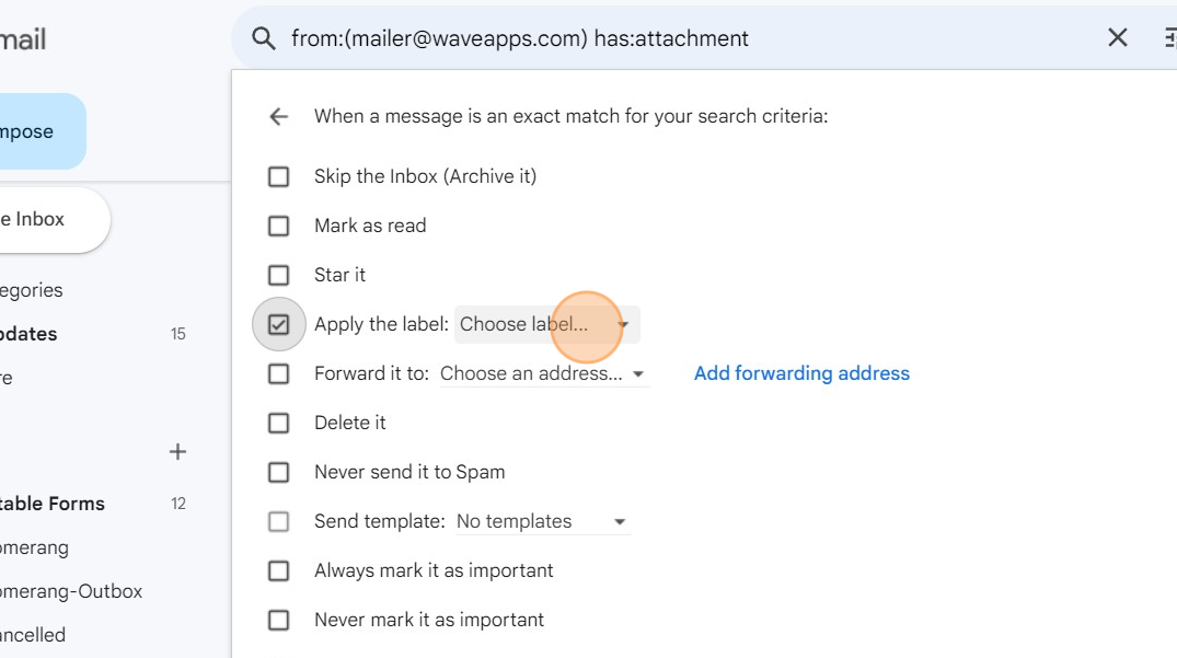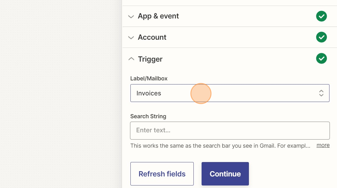 You'll apply this trigger to the specific Label you've set up (in this case, Invoices).