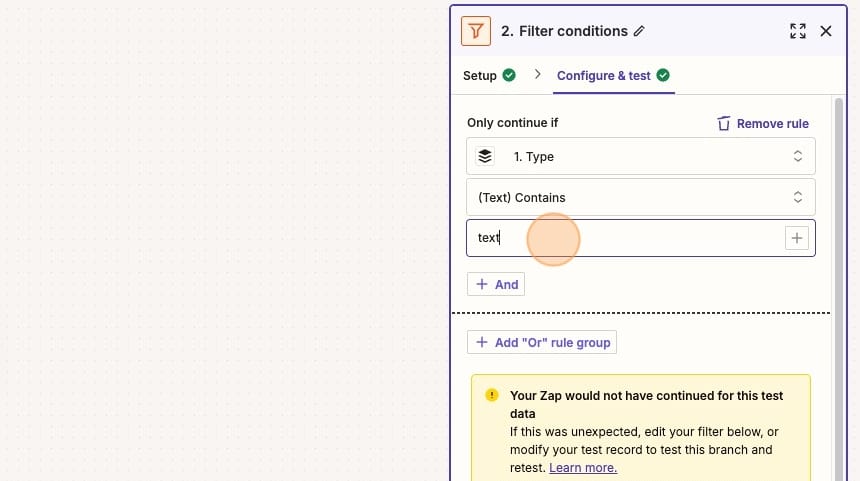 Next, I add a filter. I only want this Zap to run for text-based LinkedIn posts. I also publish images and videos on LinkedIn, and there's no reason to include those in my subsequent steps.