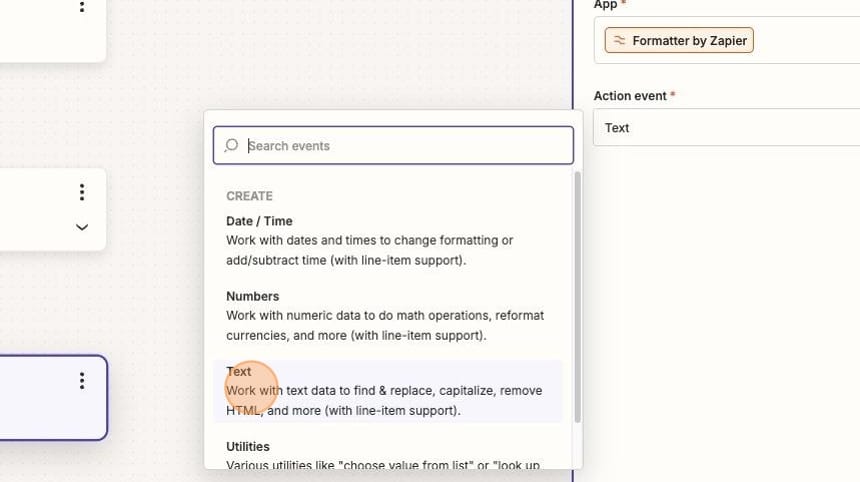 Then, I need to add a Formatter step. I want to send the text of the Buffer post to the Google Doc as HTML. Otherwise, the formatting gets goofy in your Google Doc.