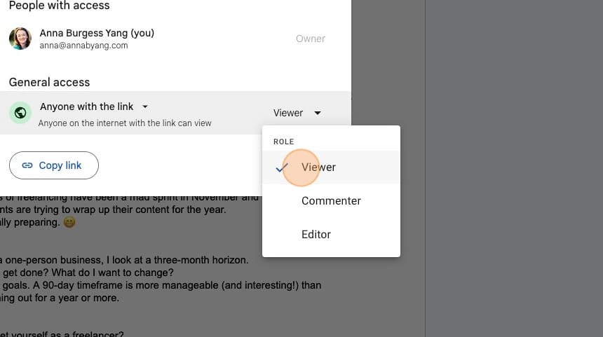 Then you'll change the permissions to "Anyone with the link can View." Then click "Done."