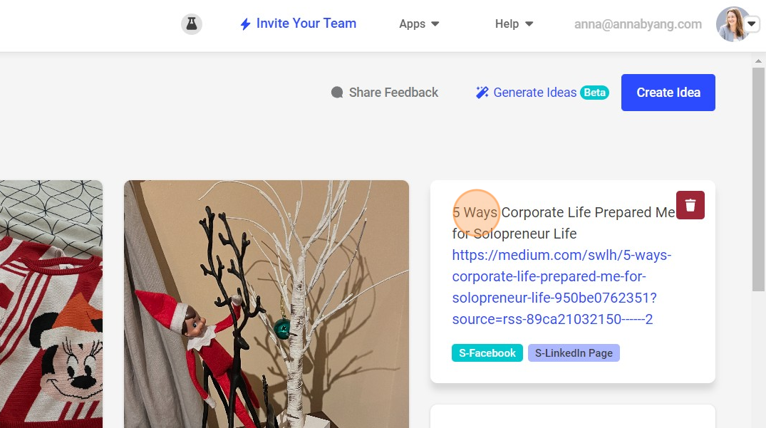 I'll go into my Ideas and see my published articles from the past week. Click on Create.